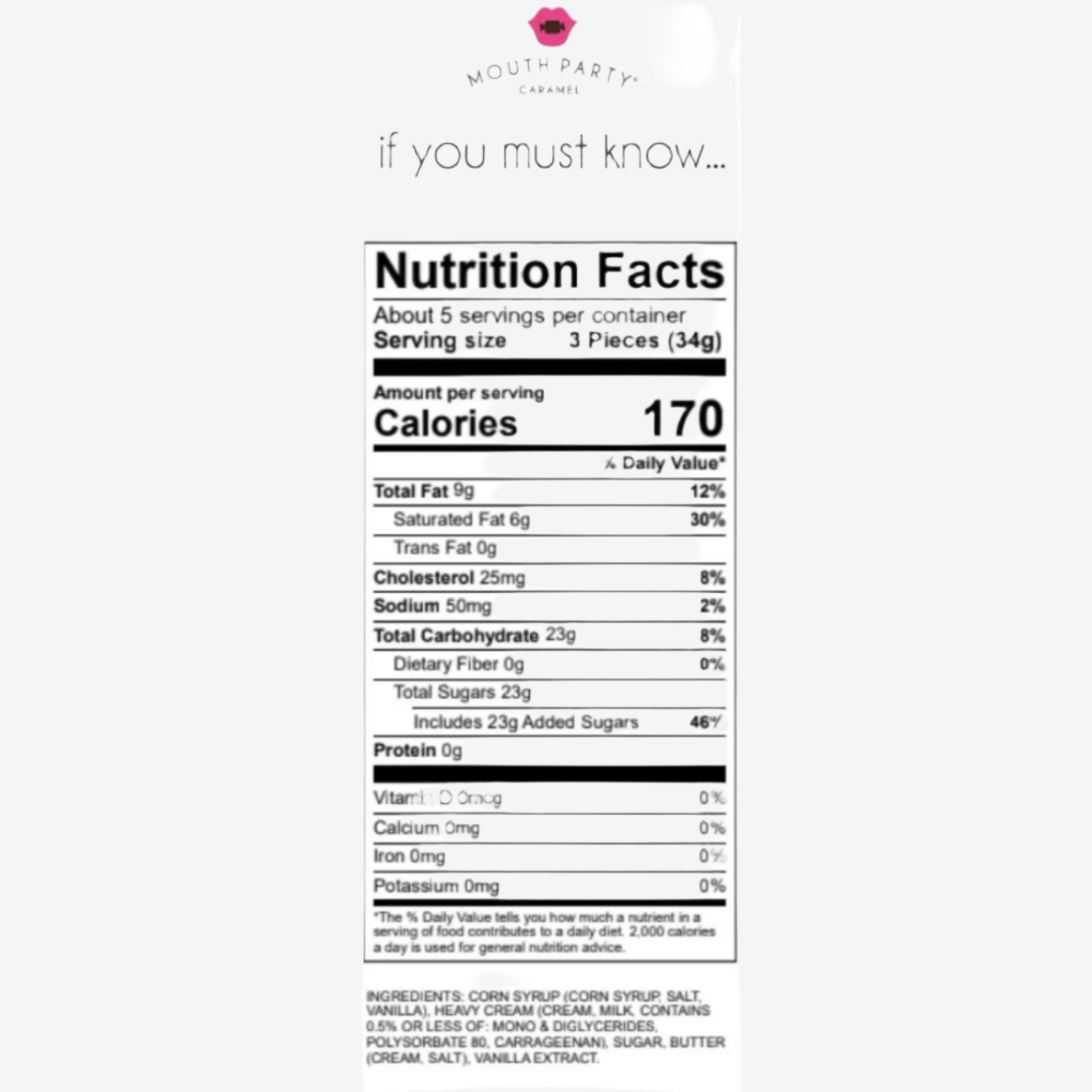 If you must know…. heavy cream, butter, sugar, corn syrup, vanilla, 38% cacao milk chocolate, and fleur de sel.