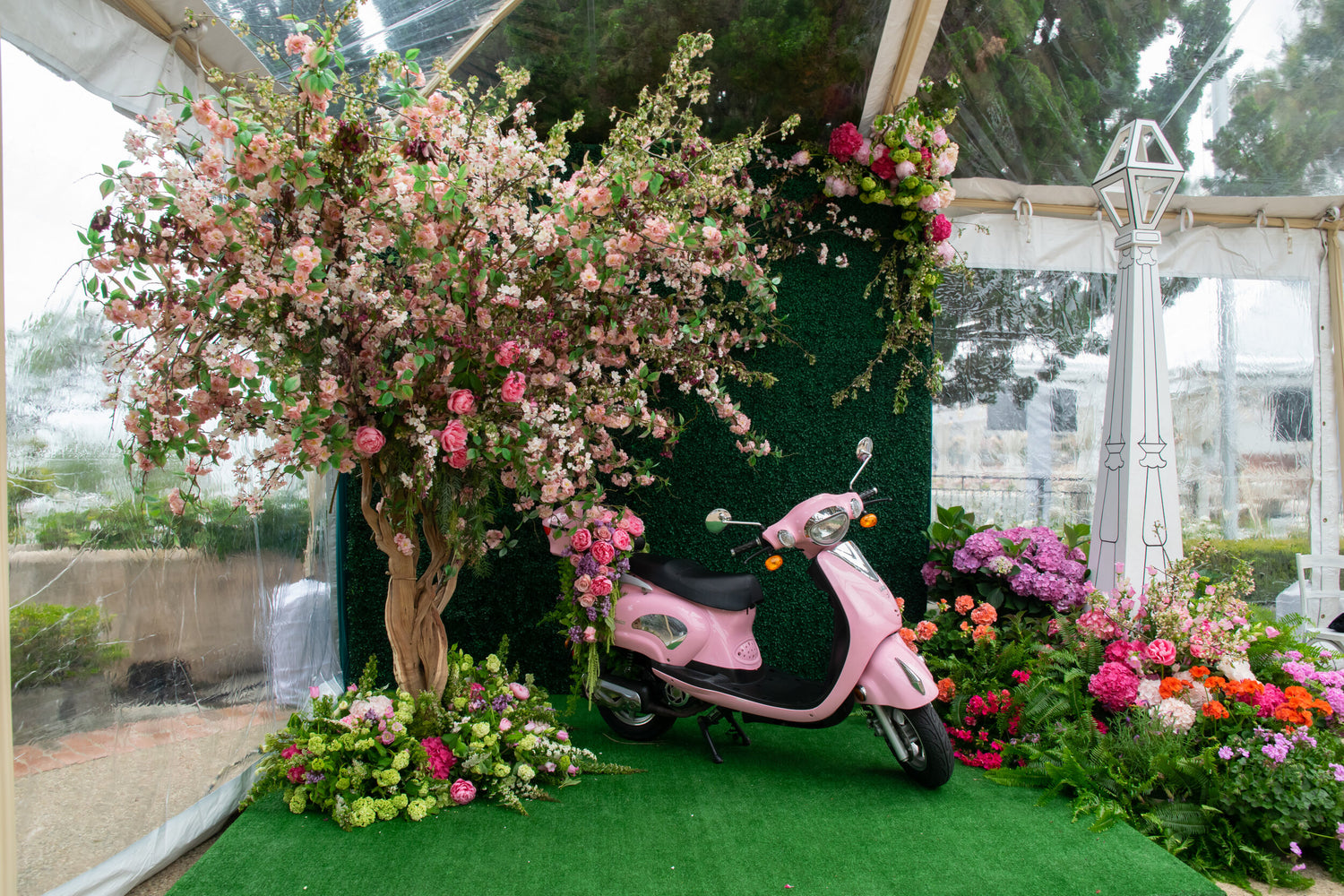 This was truly a west side girls dream come true with this dreamy bohemian-chic Bat Mitzvah hosted in Malibu. From the Birchwood and Pampas centerpieces to the comfy boho floor seating of ottomans and poufs this was a ravishing yet understanded celebration. A featured favorite from this event included the Baby Pink Vespa accompanied by the larger than life “floral tree” structure and pop up street light that served as the person Parisian garden themed photo backdrop.