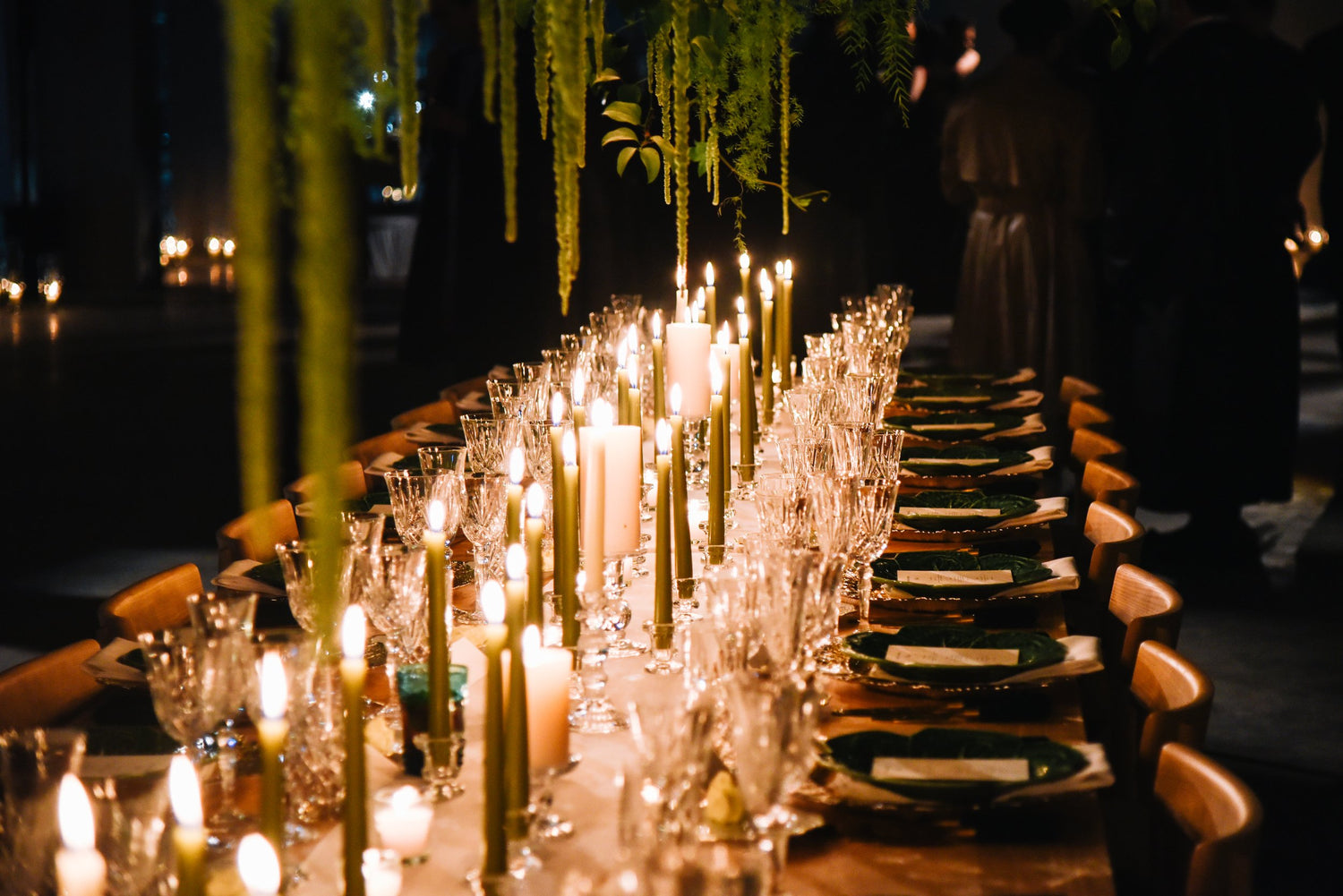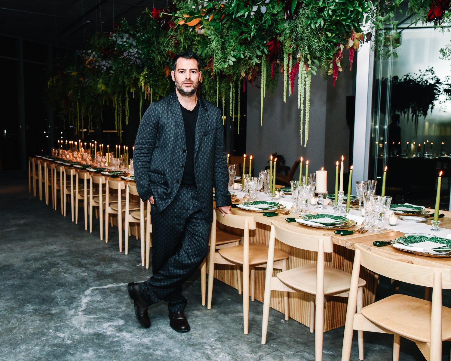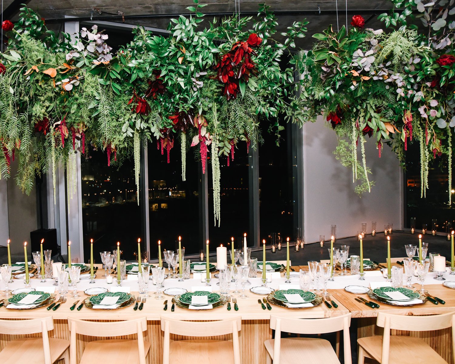 We so enjoyed working with our long time collaborator,Jonathan Simkhai, to celebrate his collaboration with Saks and the launch of his footwear line with a nutcracker themed dinner. Ballerinas danced the Dance of the Sugar Plum Fairy in his dresses, and switched after from their ballet flats to his new shoe line, as guests enjoyed a multi-course meal at a long candle lit table which had a hanging floral chandelier cloud of greens and reds above them. This stunning and decadent meal was also featured by Vogue, to read more about this event visit our Featured Press page.