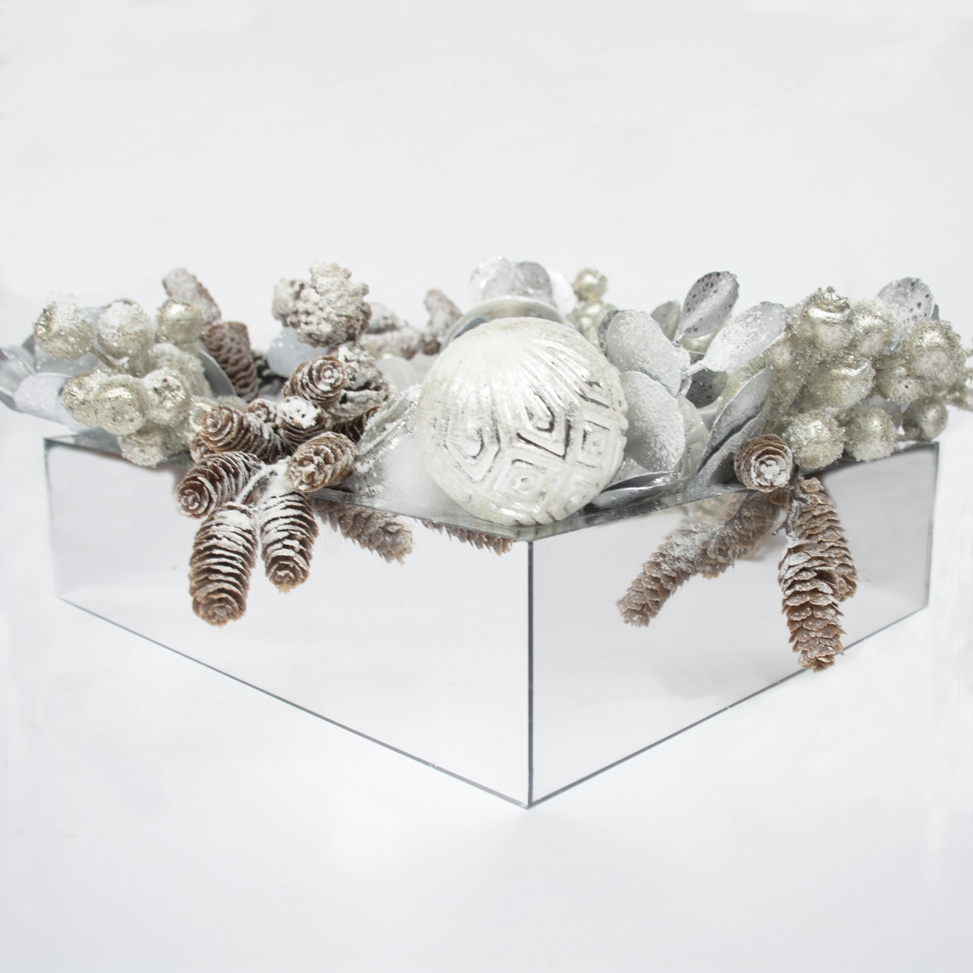 This luxurious Holiday Box comes in a glamorous mirrored tray (14 x 16) with specially curated gift items by our team. Artfully decorated with faux winter decor & Christmas ornaments to add that magical touch of the holidays. It's the perfect present this season for that special someone. This Holiday Box was created with the desire of sustainability.