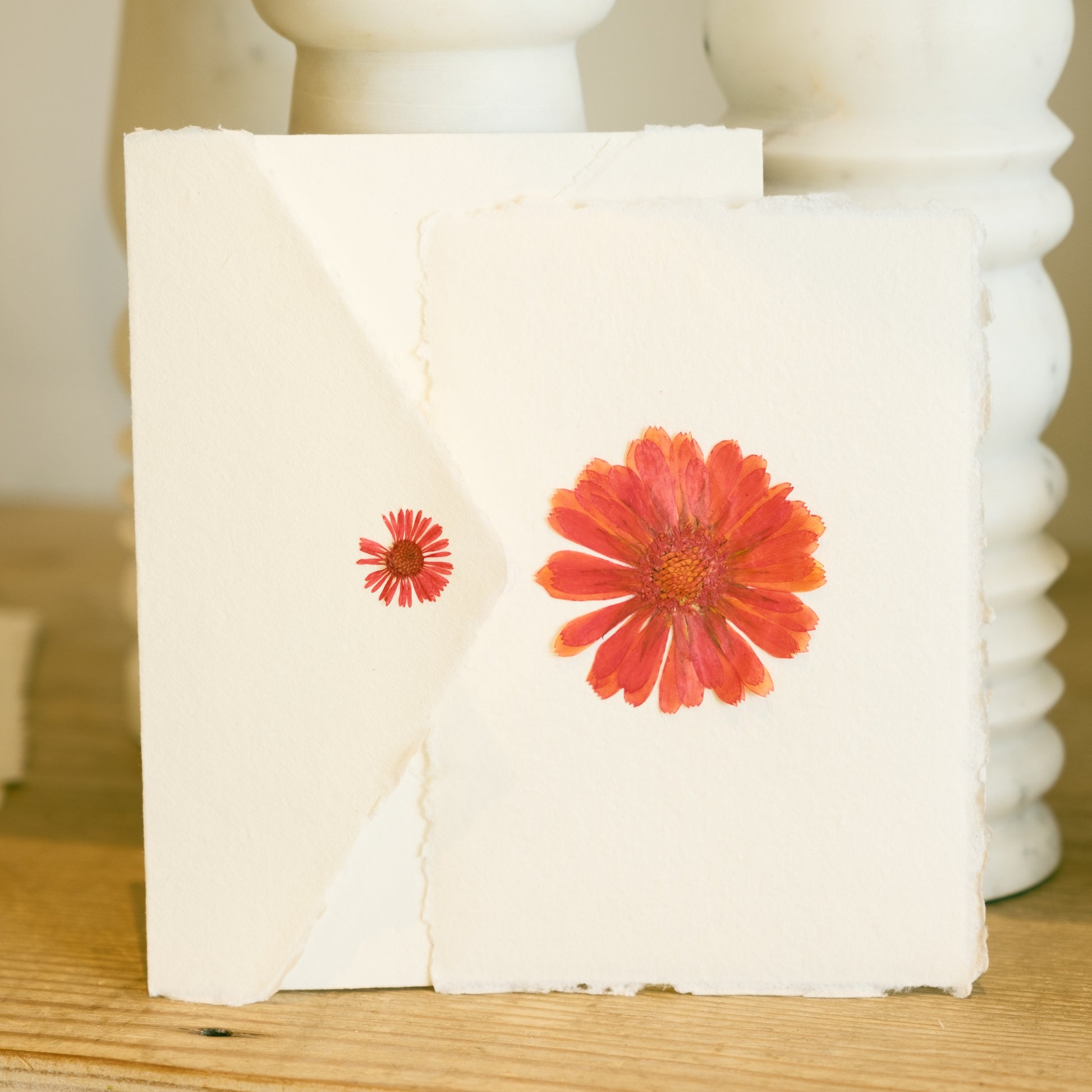 Share your emotions with the power of flowers. These greeting cards add a poetic touch with real pressed flowers. Each card is created in our Los Angeles store using hand-made cotton paper. Cards include an envelope embossed with our Empty Vase logo, and a golden sticker to seal the envelope.