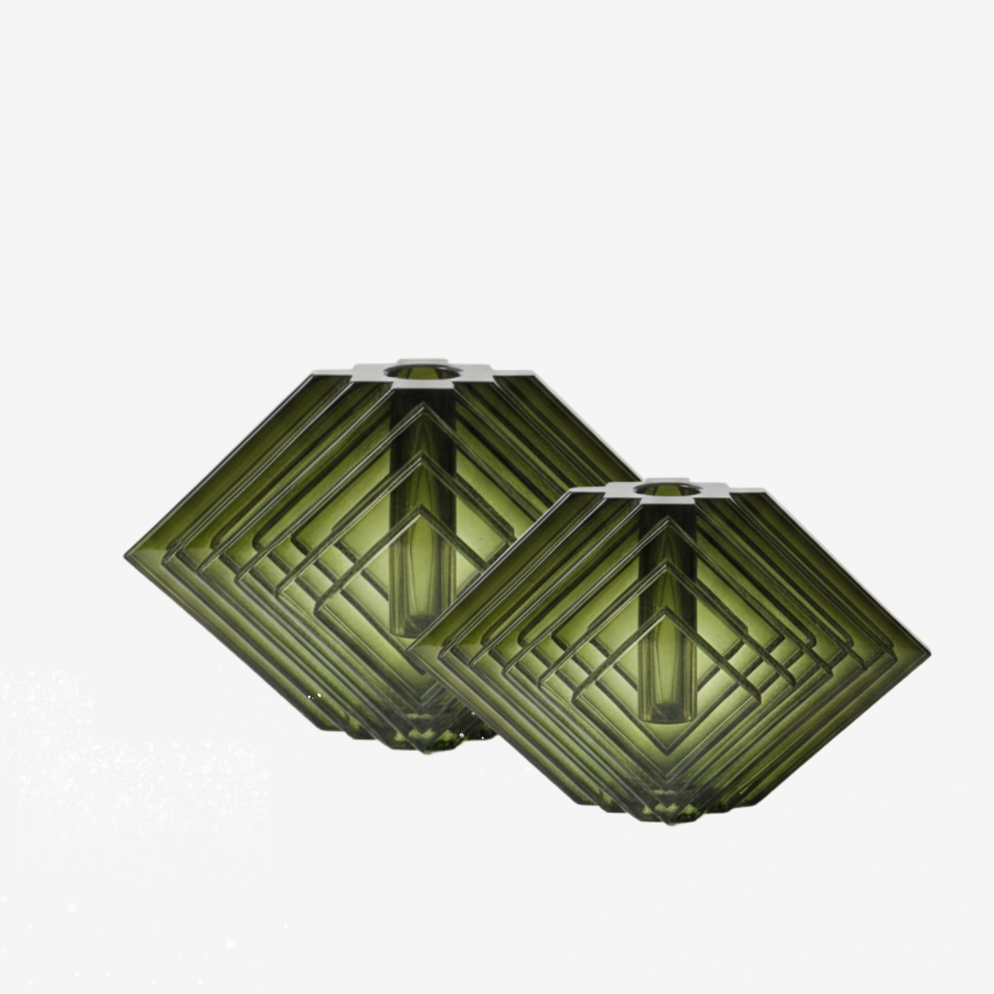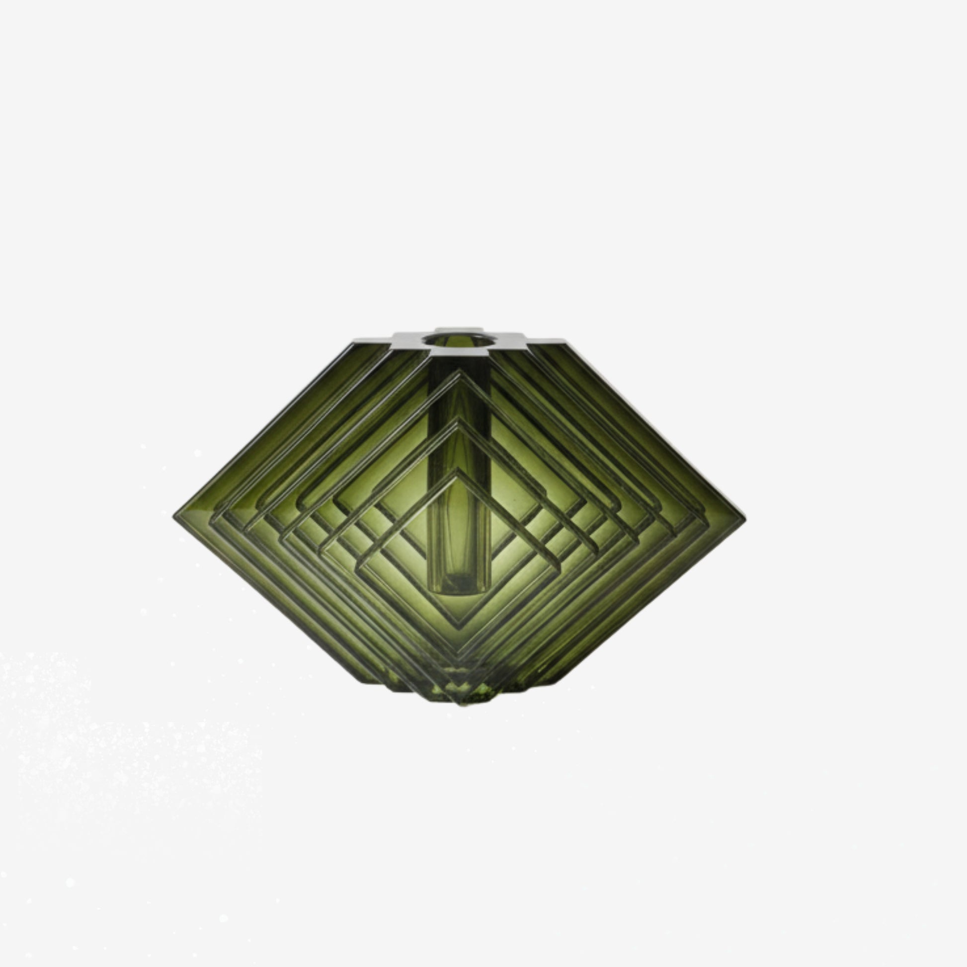 The sculptural diamond shape feels both modern and timeless, making it equally at home styled with a single stem, left empty as a design object, or paired with a candle for an elevated tablescape moment. Its olive-green hue deepens and softens depending on the light, adding warmth and visual intrigue—perfect for holiday styling yet refined enough to live beautifully year-round.