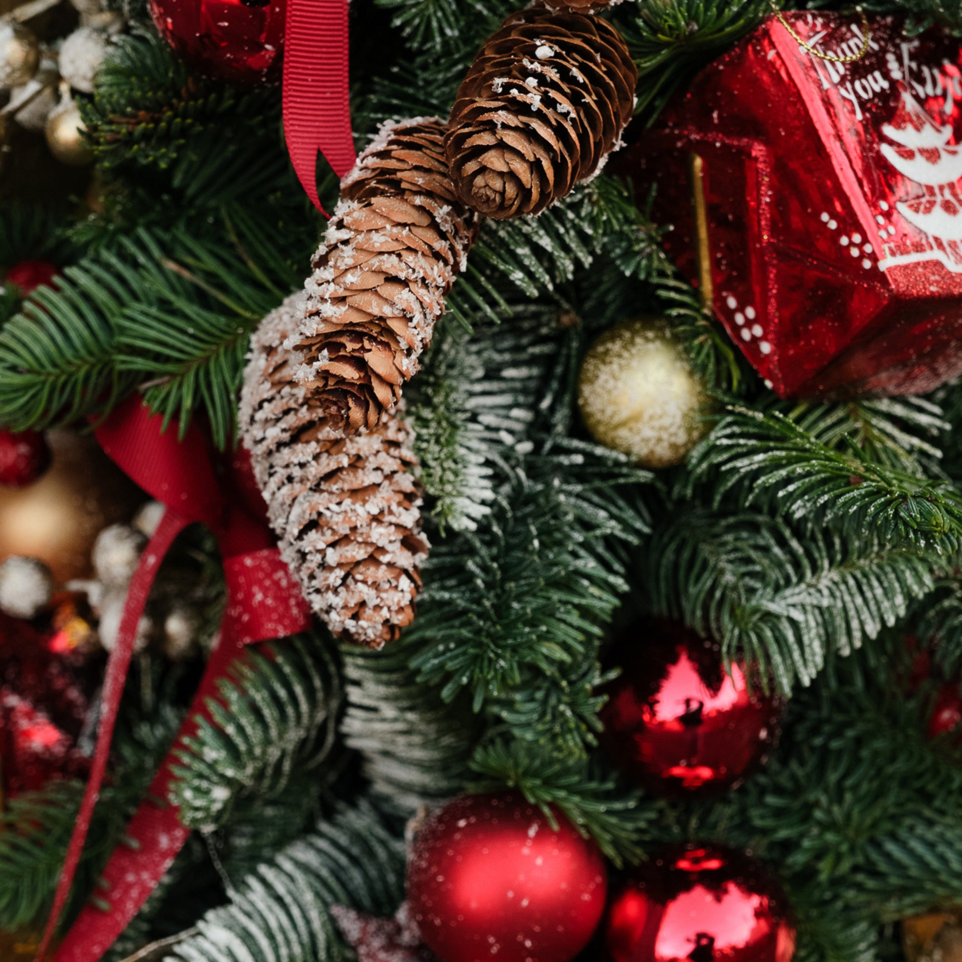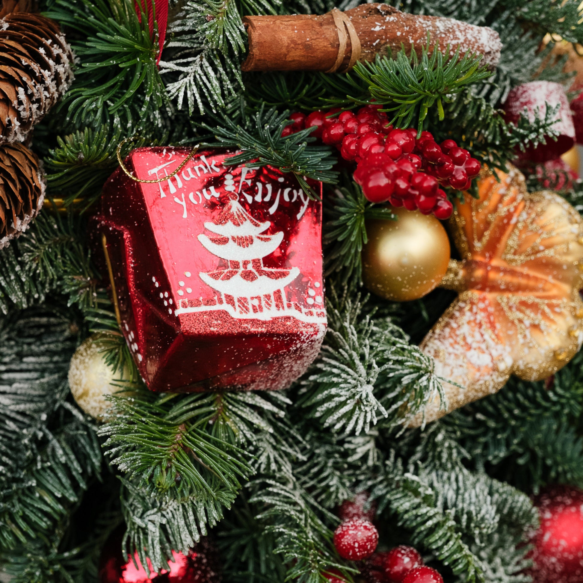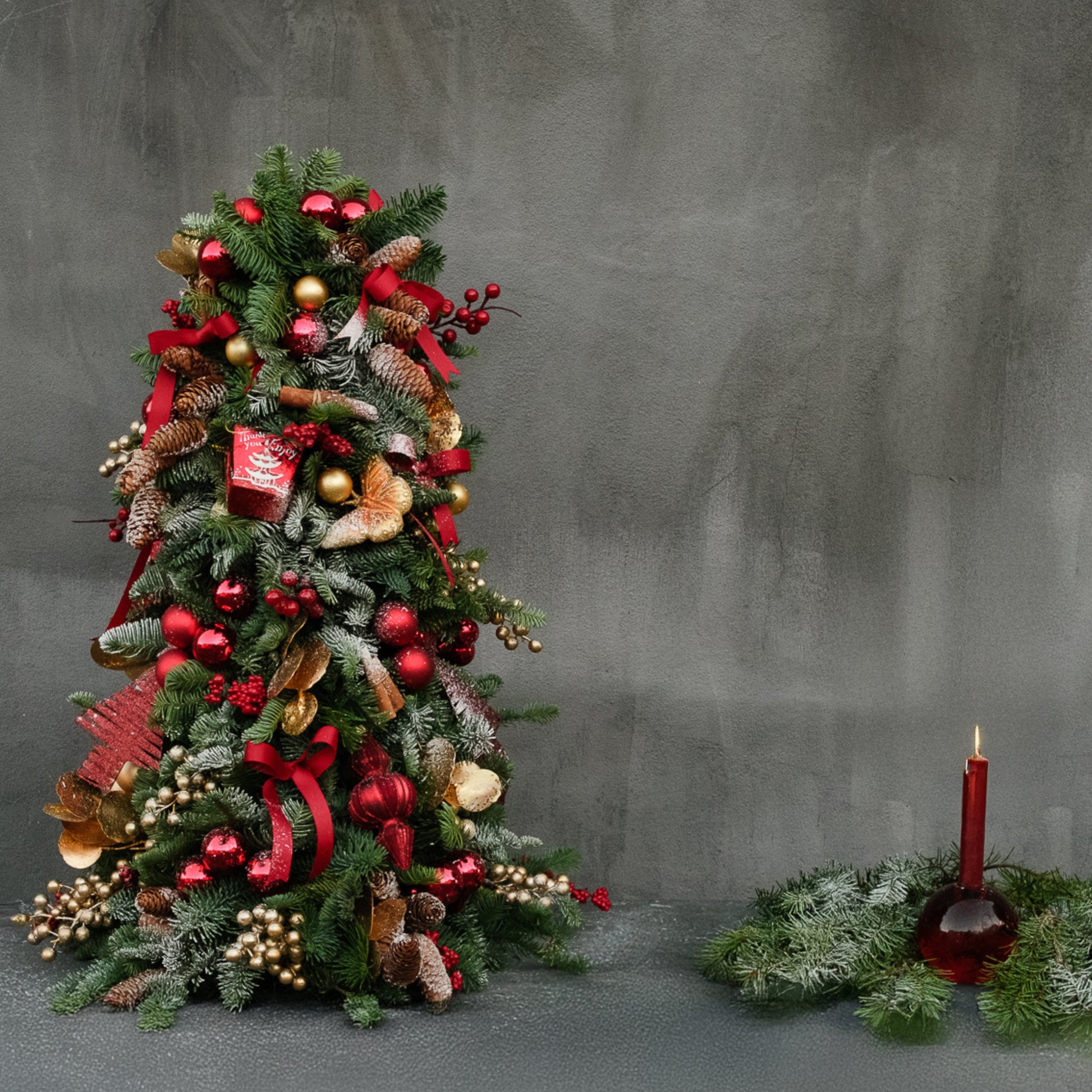 Please note: Each tree is individually crafted using premium ornaments, fresh winter greens, and seasonal elements. Slight variations in texture and placement make each piece uniquely beautiful.