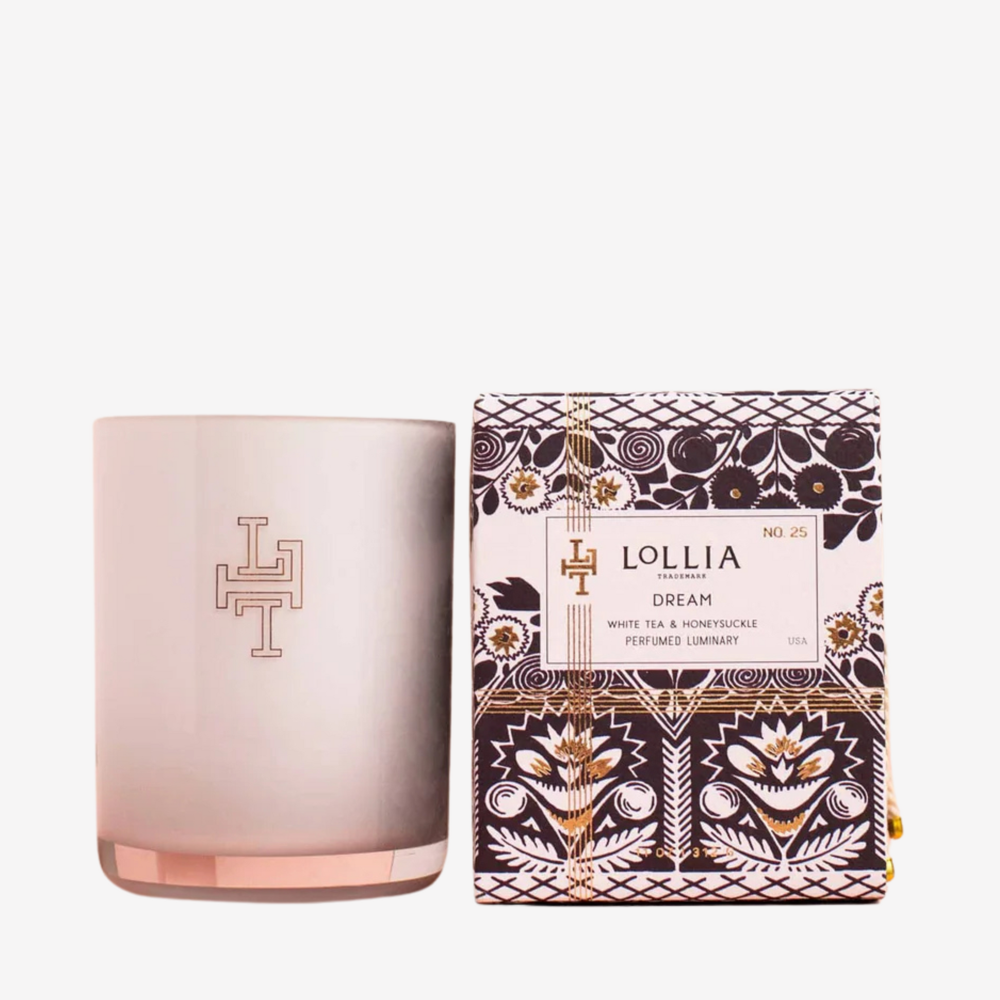 The essence of modern romantic luxury, new case glass luminaries envelop your surroundings in effortless radiance. Full of enticing details – from a die cut fragrance preview to chicly knotted ties – each keepsake box sets off the modern monogrammed candle within, washed in gold for a captivating glow.
