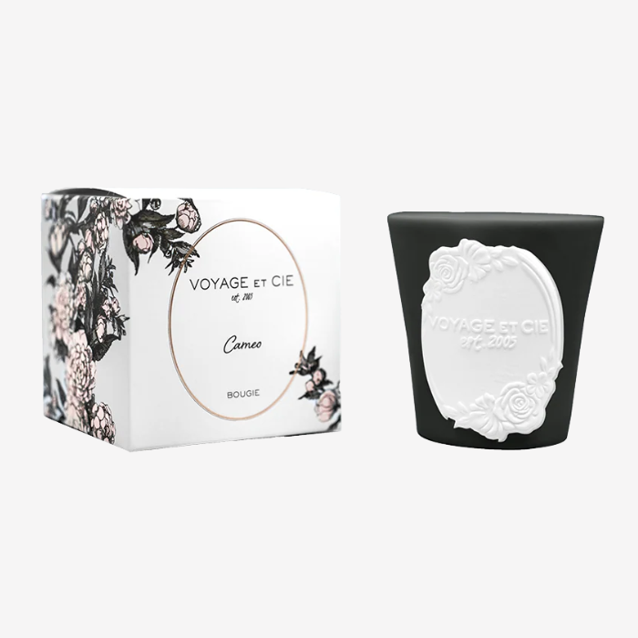 Enjoy your favorite fall and winter fragrances year round with Voyage et Cie's namesake cameo vessel in a rich black.
