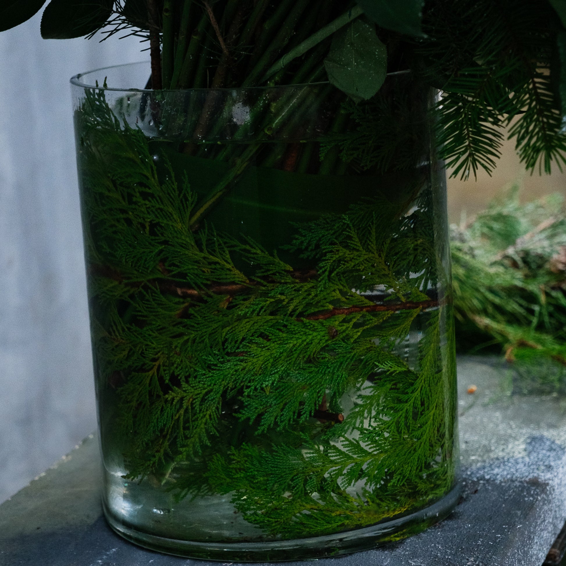Please note: Each Winter Blanc arrangement is handcrafted with fresh winter greens and natural pinecones. Subtle variations in tone, snow-texture, and placement are part of the design’s unique artistry.